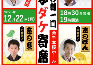 『第38回 立川志の輔一門 弟子ダケ寄席』 日時:12月22日(月)19時開演 場所:千本桜ホール 学芸大学駅