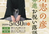 『第五回 立川志の彦 真打昇進 お祝い落語会』 日時:5月30日(土)昼の部12時開演 夕方の部17時開演 場所:久良三 名古屋