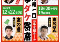 『第38回 立川志の輔一門 弟子ダケ寄席』 日時:12月22日(月)19時開演 場所:千本桜ホール 学芸大学駅
